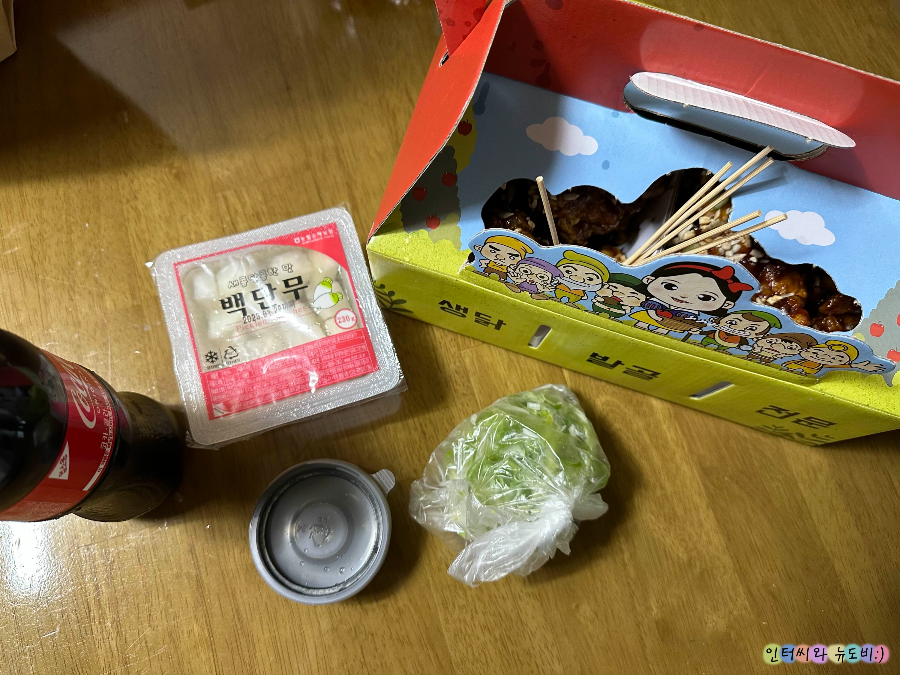 콜라, 무, 파채, 소스를 주시는데